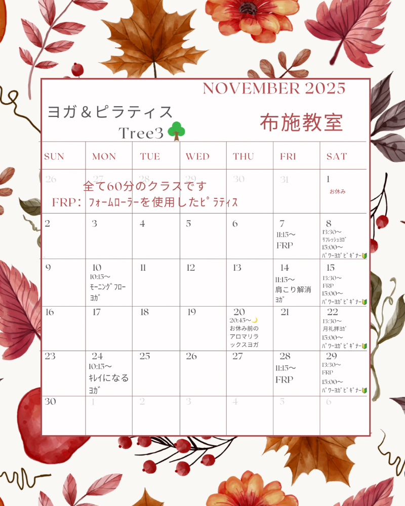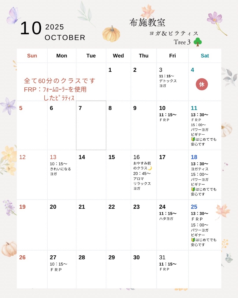 当ヨガ&ピラティス教室の目的は「体が整うと心も整う」です。又ローラーを利用したピラティスファンクショナルローラーピラティス(FRP)など姿勢改善に特化したクラスもおすすめです。